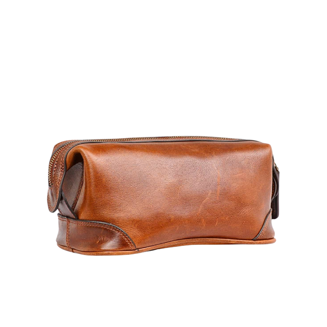 | The Men’s Grooming Pouch is a compact leather accessory designed to store grooming essentials while travelling. Crafted from premium leather, it features a secure zip-around closure and a durable structure for easy packing. Ideal for business trips and holidays, this leather grooming pouch combines practicality with refined craftsmanship. |